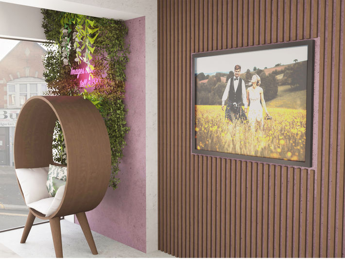 This project in North London was to change the design of the entrance to make it more appealing and welcoming the visitors. The original space was designed in several different colours, mostly black and white. We changed the space for it to feel more relaxed and confident. We also added a selfie corner upon request from the client.